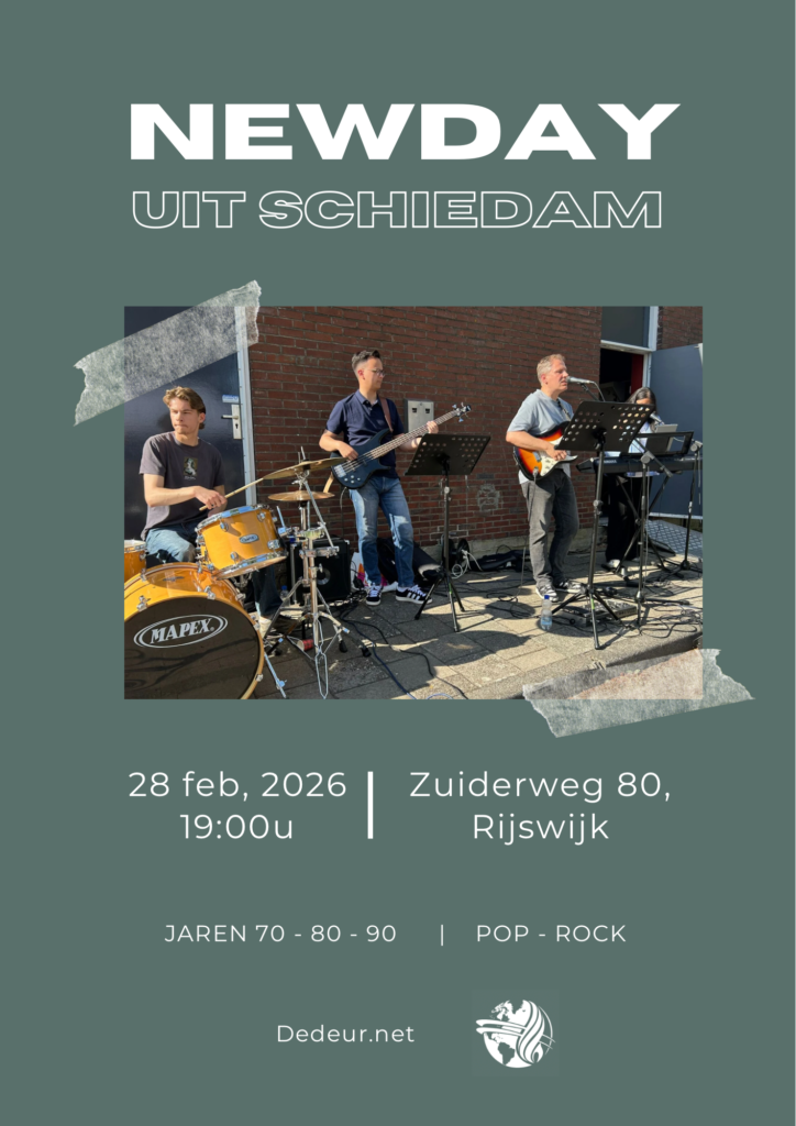 Op zaterdag 28 februari om 19.00 uur staat NEWDAY uit Schiedam bij ons op het podium!